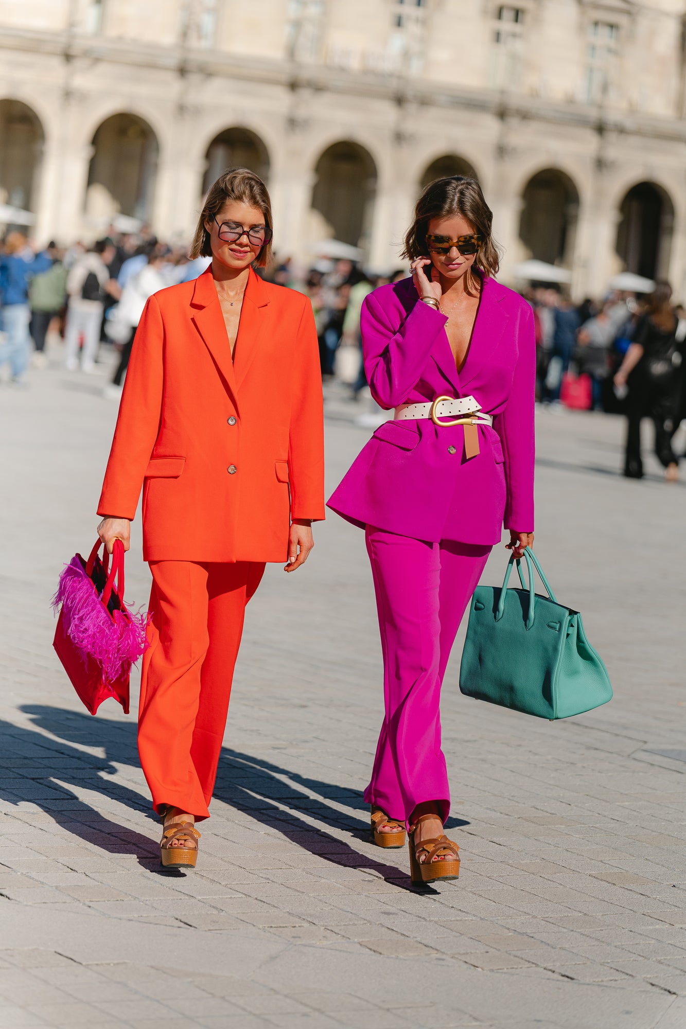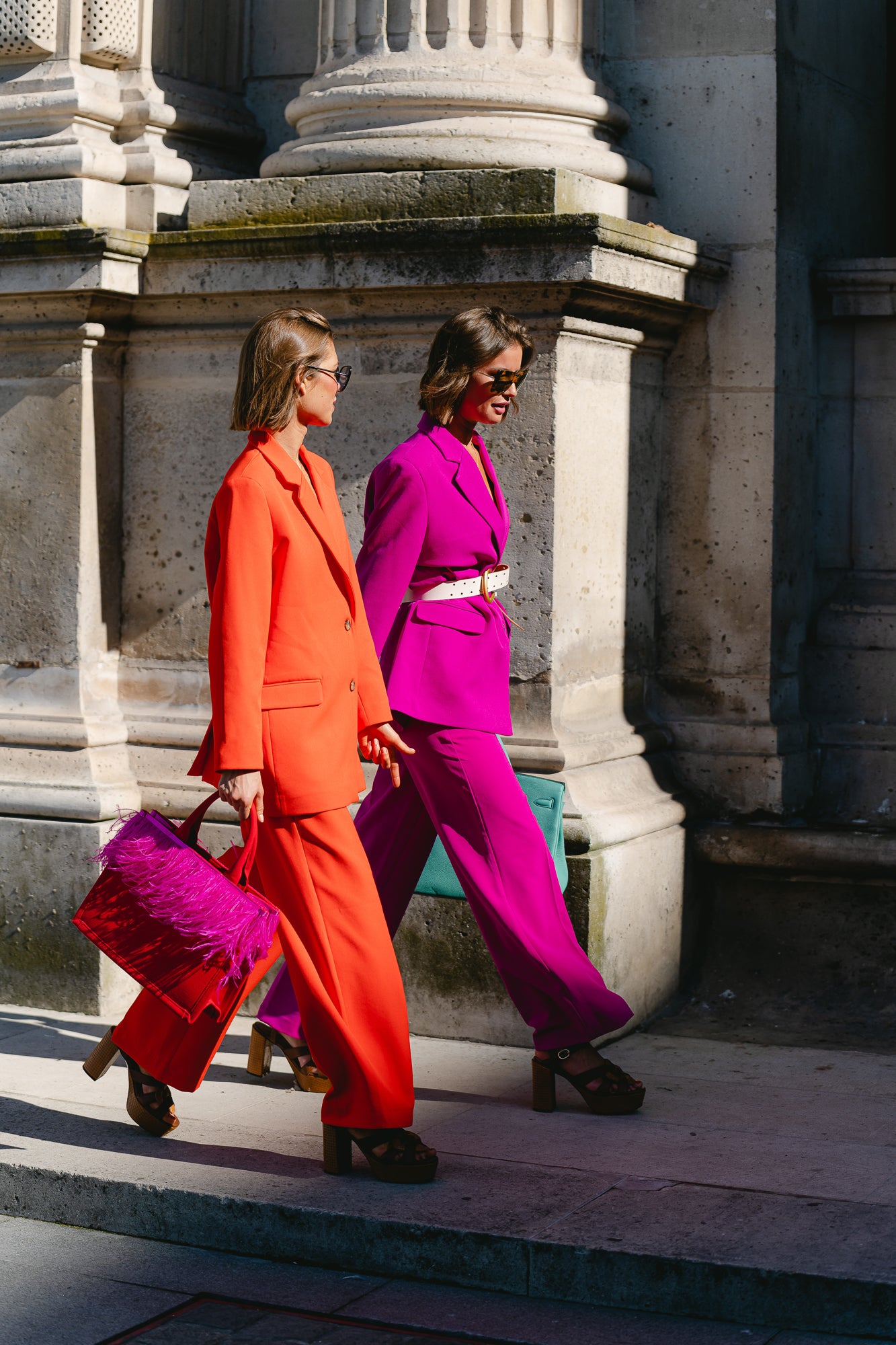The more noticeable, the better. That's what we like to hear at Les Jumelles, because our brand is known for the color explosions, color blocking and eye-catching prints. We felt entirely fashion-proof in our Heidi blazer and Robin pants in spicy orange and bright fuchsia. Did you already spot them?
